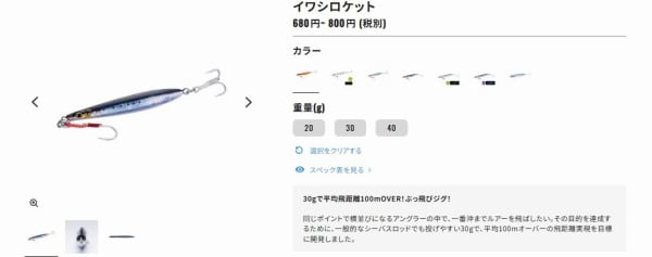 【シマノ イワシロケット20gJM−C20R 商品の説明】