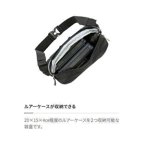 表面に撥水生地を使用したウエストバッグです。釣行時だけでなくタウンユースにも使用できる機能性とデザイン性の両立を追求しました。