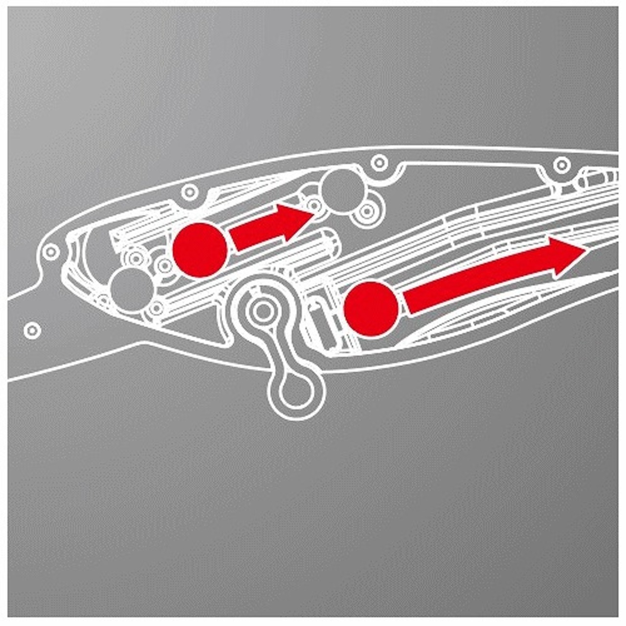 巻いている時は低重心で泳ぎを安定させますが、ロッドアクションを加えた時は、重心が高くなる事で、ボディの横倒れを発生させ、キレのあるダートアクションをアシストします。
