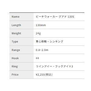 シンキングタイプのグアドは、ミノーが持つ釣れる要素を最大限に引き出したセッティング。とくに大型のベイト捕食時に絶大な効果を発揮し、小型サイズを避け、座布団ヒラメを目指すような釣りに最適です。飛距離は投げ感たっぷりのクラス最高レベル。横風や向かい風をも、ものともせず季節風にも負けません。加えてボリュームのあるボディは、ブリブリ強く動くアクションで、広範囲にいるヒラメはもちろん、食い気の薄いヒラメにしっかりと存在をアピールして食わせに繋げます。使用中のストレスも少なく、シャローでのリップの小突きを最小限に抑制するためのリップ形状にしたことにより、快適かつ状況を選ばずに使えるのがグアドの本質です。