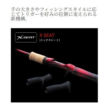 トップウォーターからラバージグまで、あらゆるルアーに高次元で対応。常に理想的なキャストを実現できるよう、リールサイズやシチュエーションに合わせてトリガー位置を調整できるXシートを搭載しています。