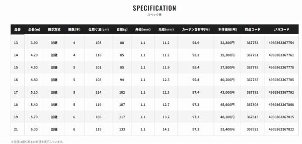 曲がるほどに秘めた力を実感する、ネジレに強いスパイラルXをこのクラスで初採用。スパイラルXの先進性は特に魚を掛けてから実感できます。沖で掛けた魚の瞬発的な抵抗をしなやかに受け止めてグイッと浮かせ、無駄な泳ぎをさせずに水面を滑らせて玉網入れできます。より正確な投餌が決まる軽やかな振り込み性能とともに、合わせがピシッと決まる水切れの良さも見逃せません。管理釣り場から野釣り、ボートでの釣りも余裕でこなす硬式先調子で、8〜21の全13アイテム。高貴で渋味のある紫色の総塗りは、合わせ部の竹色がアクセントになって、より高級感あふれる仕上がりを見せています。グリップ力に優れて滑りにくく、手にやさしい「しっとり綾織握り」もこのクラスでは初めて。見た目に美しい綾織りと握り込んだときのしっとり感が竿の総合性能を引き立てています。