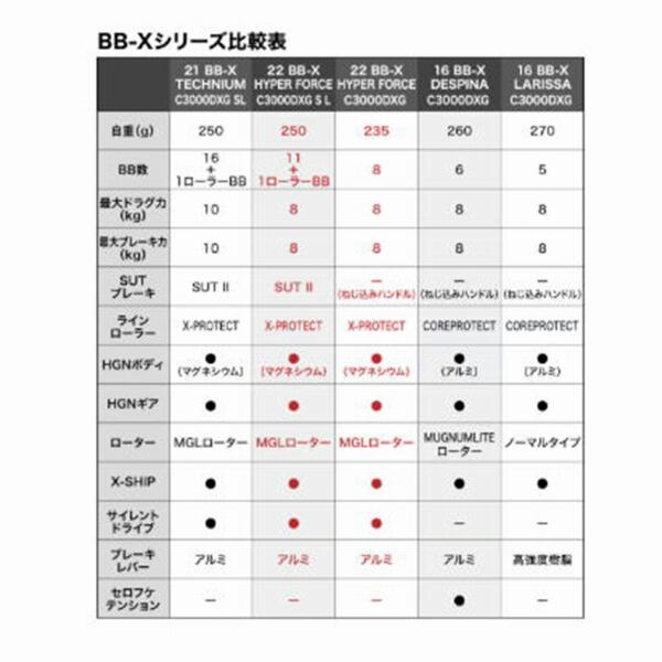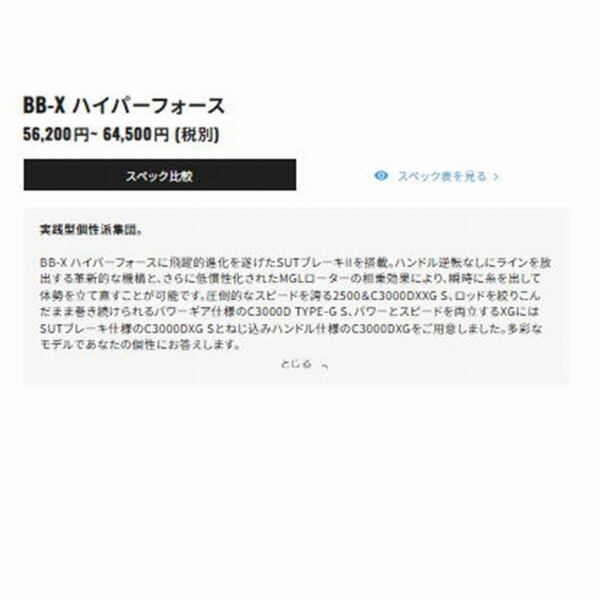 BB-X ハイパーフォースに飛躍的進化を遂げたSUTブレーキIIを搭載。ハンドル逆転なしにラインを放出する革新的な機構と、さらに低慣性化されたMGLローターの相乗効果により、瞬時に糸を出して体勢を立て直すことが可能です。圧倒的なスピードを誇る2500&C3000DXXG S、ロッドを絞りこんだまま巻き続けられるパワーギア仕様のC3000D TYPE-G S、パワーとスピードを両立するXGにはSUTブレーキ仕様のC3000DXG Sとねじ込みハンドル仕様のC3000DXGをご用意しました。多彩なモデルであなたの個性にお答えします。