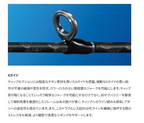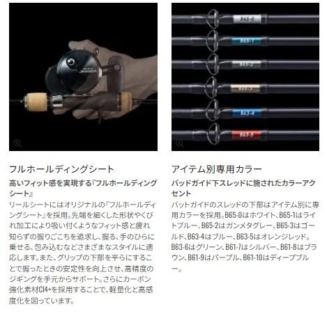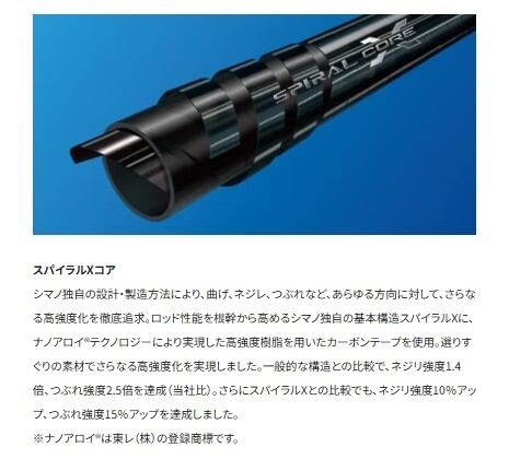 ●ジギングロッドの本質である「ジャークの操作性」を進化させ、度重なるテストを経てたどりついた答えは、フル1ピースブランクスのさらなる細身&スローテーパー化。フォールアクションを基軸に「遅い誘い」や「速い誘い」、そしてスピードを巧みに可変させる「コンビネーションジャーク」など、さまざまな誘いを高精度に操るロッドを実現するために曲がりのバランスを徹底的に突き詰め、支点がスムーズに手元側へ移行するように設計。グリップ前後までもが絶妙に曲がることで変化を感知しやすく、ジャークのタイミングや潮の抵抗を的確に把握。過剰な反発を抑えることで、疲労とストレスをも大幅に低減しました。さらにシマノ独自の基本構造「スパイラルXコア」によって、ブランクスの細径化に伴うネジれやパワーロスを解消しています。