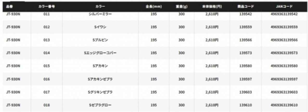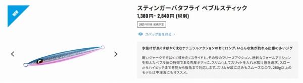 オシア スティンガーバタフライ ペブルスティック 300g JT-930N シルハ゛ーミラー 011